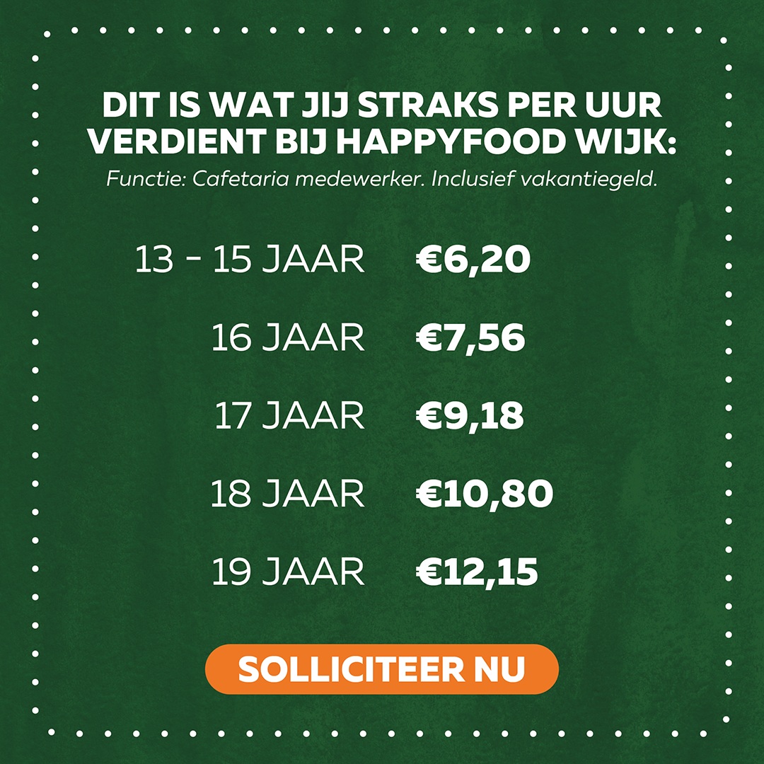 Onze gloednieuwe HappyFood-vestiging in Wijk bij Duurstede is geopend en we zoeken nog enthousiaste mensen die zin hebben in een toffe baan!